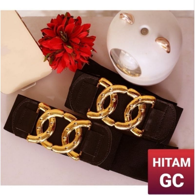 Detail BELT KULIT KEPALA EMAS V. H.D.CC /IKAT PINGGANG WANITA ELASTIS