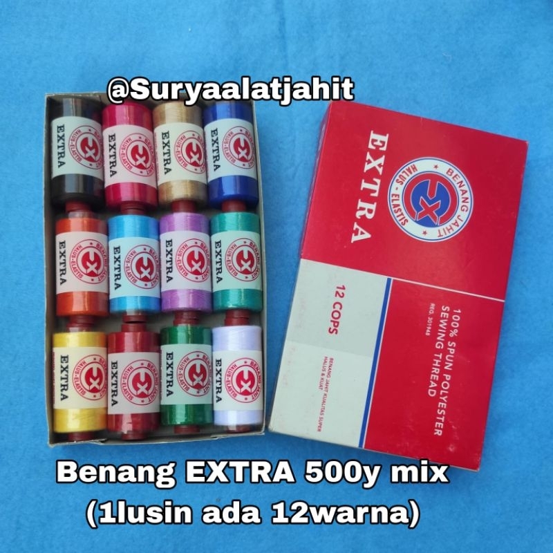 Benang EXTRA 500y Mix (1lusin ada 12warna) =rp.23.000/12pcs