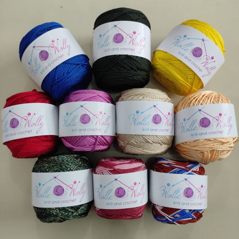 Benang rajut Poly kilap, Doff warna, dan Doff sembur berbahan dasar polyester 100%. Benangnya lembut di tangan dan cocok untuk dijadikan tas, dompet, baju, sepatu, dan berbagai produk Amigurumi.