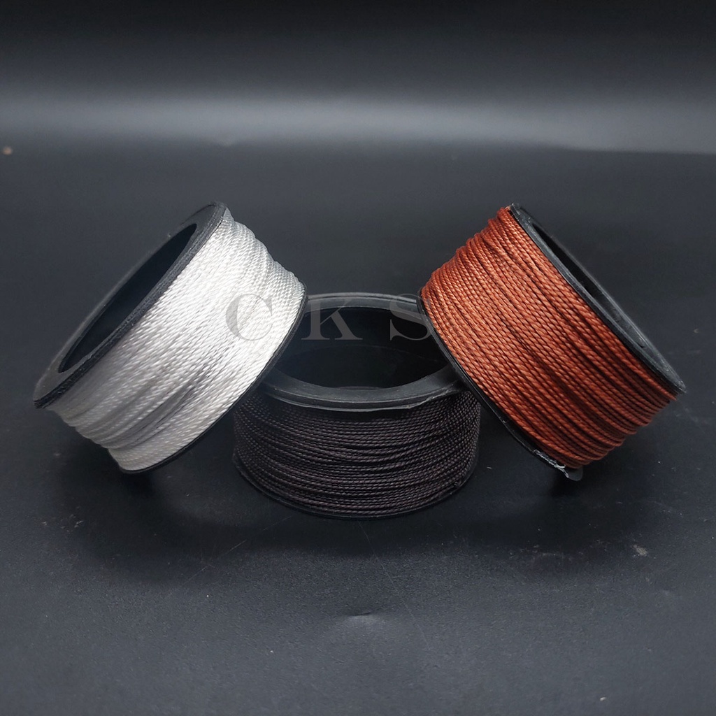 Benang serba guna - jenis bahan : nilon panjang : 11 -- 15 meter tersedia warna : coklat, hitam & putih harga per : 1 rol kegunaan : sol, jahit tas, kerajinan, dll