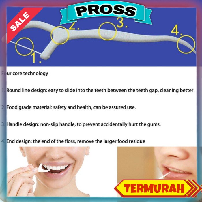 Cara Penggunaan Tusuk Gigi/Dental Floss&Pick : *Masukkan benang tepat disela antara 2 gigi, dengan cara perlahan-lahan menarik mundur agar benang masuk. *Saat menarik maju dan mundur juga gerakkan keatas dan kebawah, agar kotoran dan sisa makanan dapat dibersihkan. *Di bagian gusi & belakang gigi yang sudah dibersihkan dapat menggunakan tusukan gigi untuk membersihkan sisa makanannya