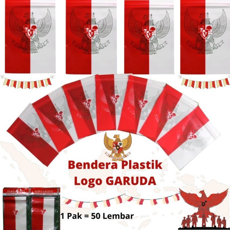 CATATAN : - 1 Bungkus isi 50 pcs Bendera - Barang selalu ready, silahkan langsung order - Produk ini hanya Bendera Merah Putih Plastiknya saja, belum ada talinya