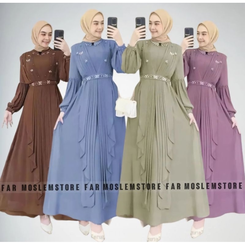 Fashion Muslim > Dress Muslim > Gamis > BENECIA DRESS MAXY BUSUI FREINDLY MIX PAYET MUTIARA/GAMIS CERUTY BABYDOLL FULL FURRUNG/GAMIS MUSLIM WANITA TREND 2023/FAR MOSLEMSTORE