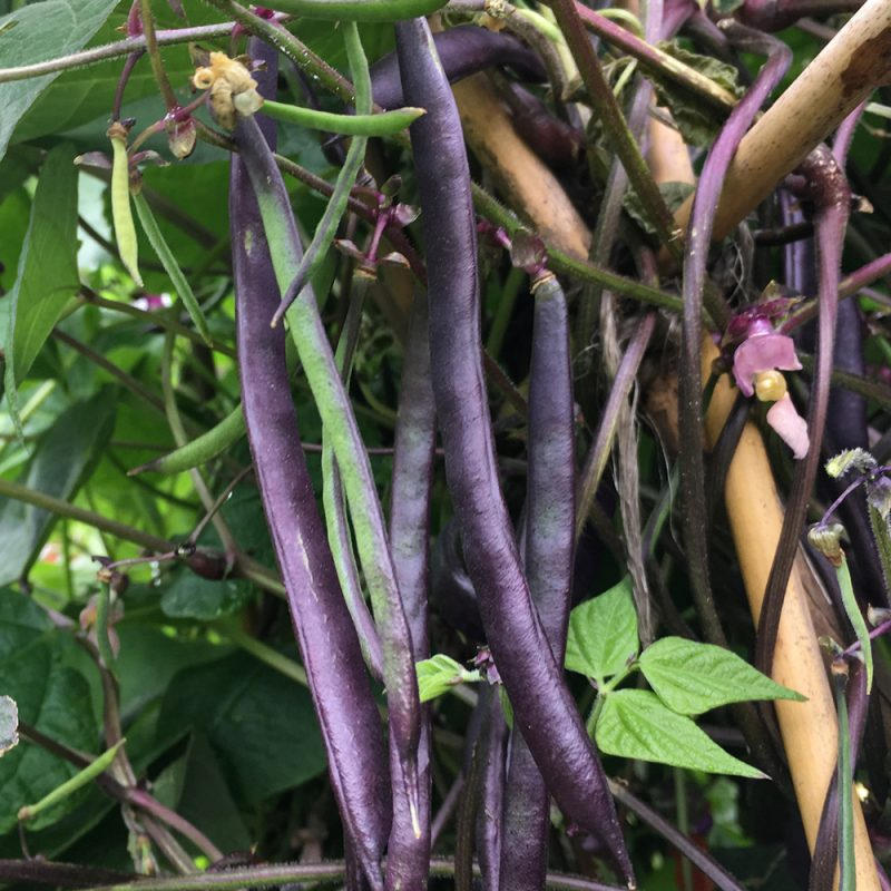 Climbing French Purple Bean Blauhilde Kacang Prancis panjat yang andal, menarik, dan berkulit sangat ungu yang dipanen terus menerus dalam waktu lama dari Juli hingga Oktober. Bisa dimakan dalam salad atau berubah menjadi hijau tua saat dimasak. Bunga berwarna ungu dan sangat menarik di perbatasan. Resistensi yang baik terhadap Bean Mosaic Virus. Tinggi: 180cm (70″). Sebaran: 30cm (12″).