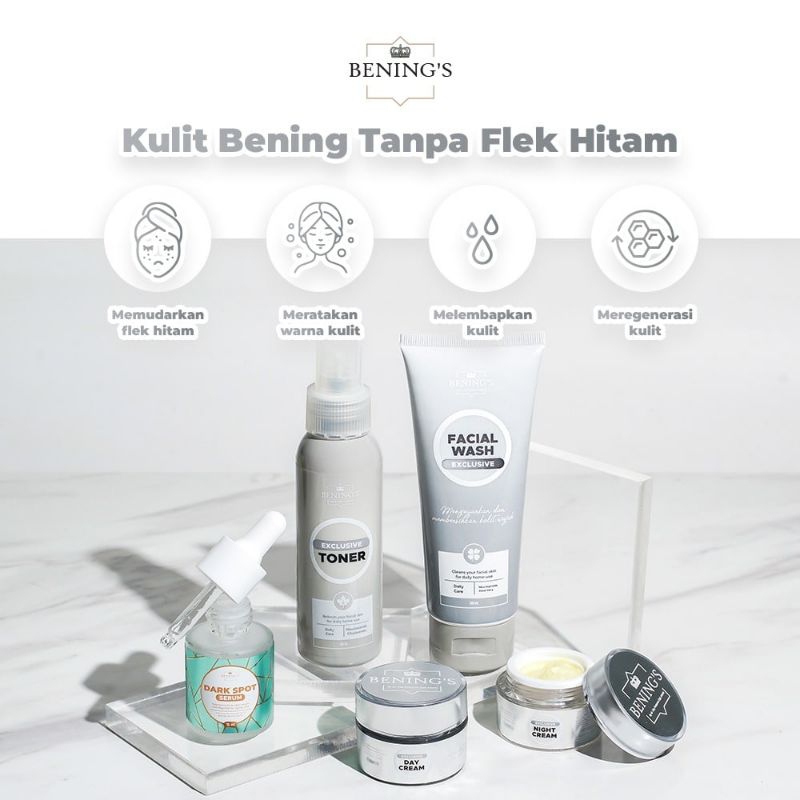 PAKET EXLUSIVE Diformulasikan untuk jenis kulit ber flek hitam, bekas jerawat hitam membandel, bintik hitam sekaligus mampu untuk mencerahkan dan membuat glowing.