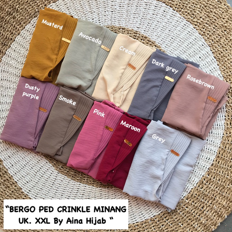 Bismillah Ready Bergo Ped Crinkle Airflow Bahan Crinkle Kareteristik bahan adem, mudah di bentuk, nyaman di pakai seharian, tidak menerawang Good Quality, Real Picture!