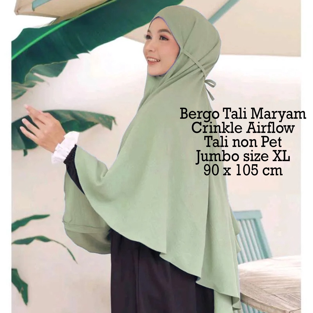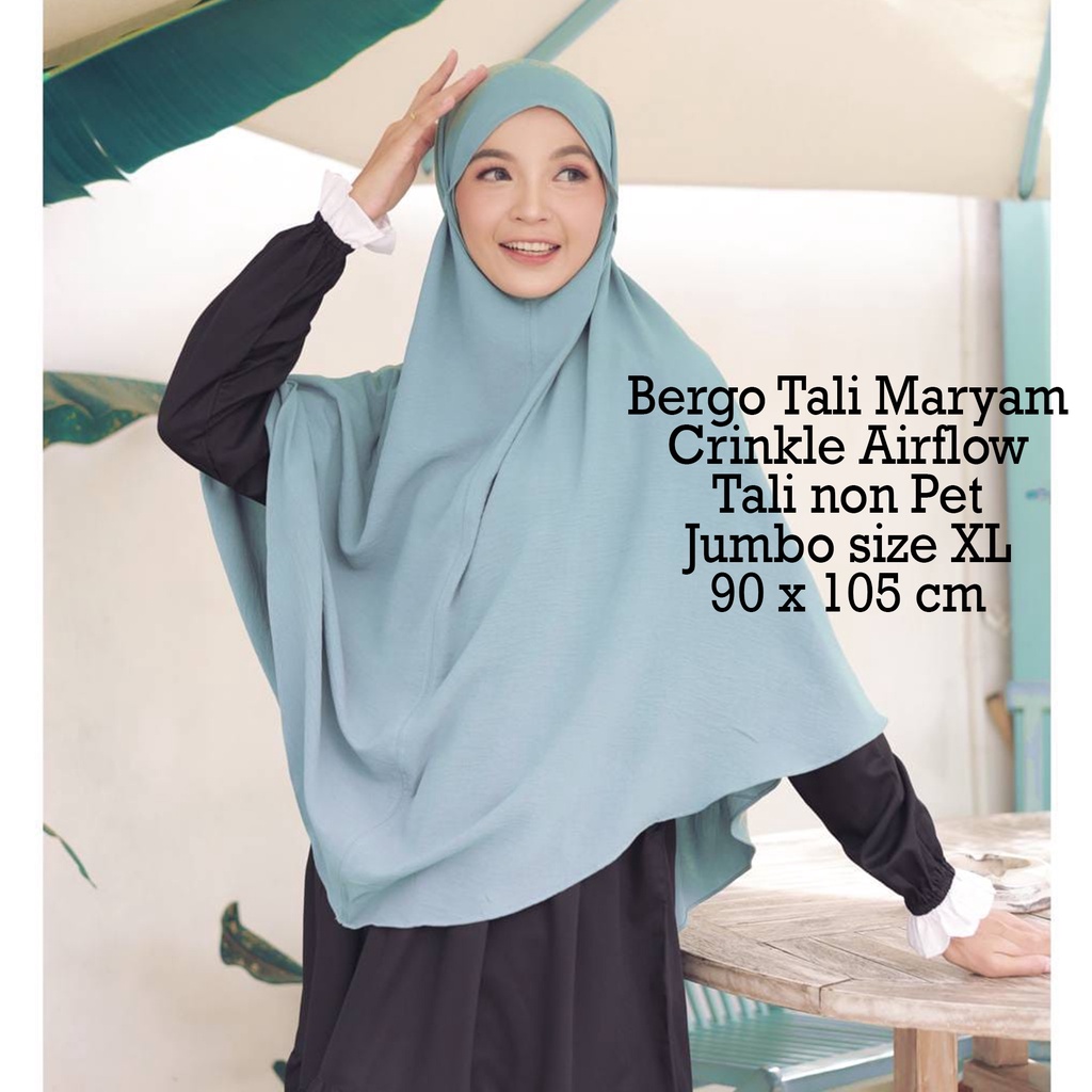 Detail Ramadhan Sale - BERGO XL Man Jadda Hijab Bergo Mariyam Jumbo Crinkle Airflow Jilbab Khimar Instant Bergo Maryam Cringkle non pet size XL