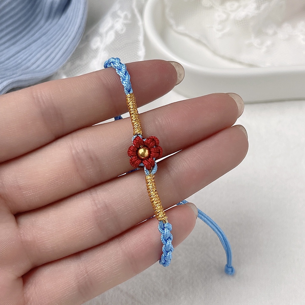 Aksesoris Fashion > Gelang Tangan & Bangle > Beri Anda Bunga Merah Kecil Gaya Yang Sama Tenun Tangan Gelang Perempuan Lucu Segar All-match Gelang Pasangan