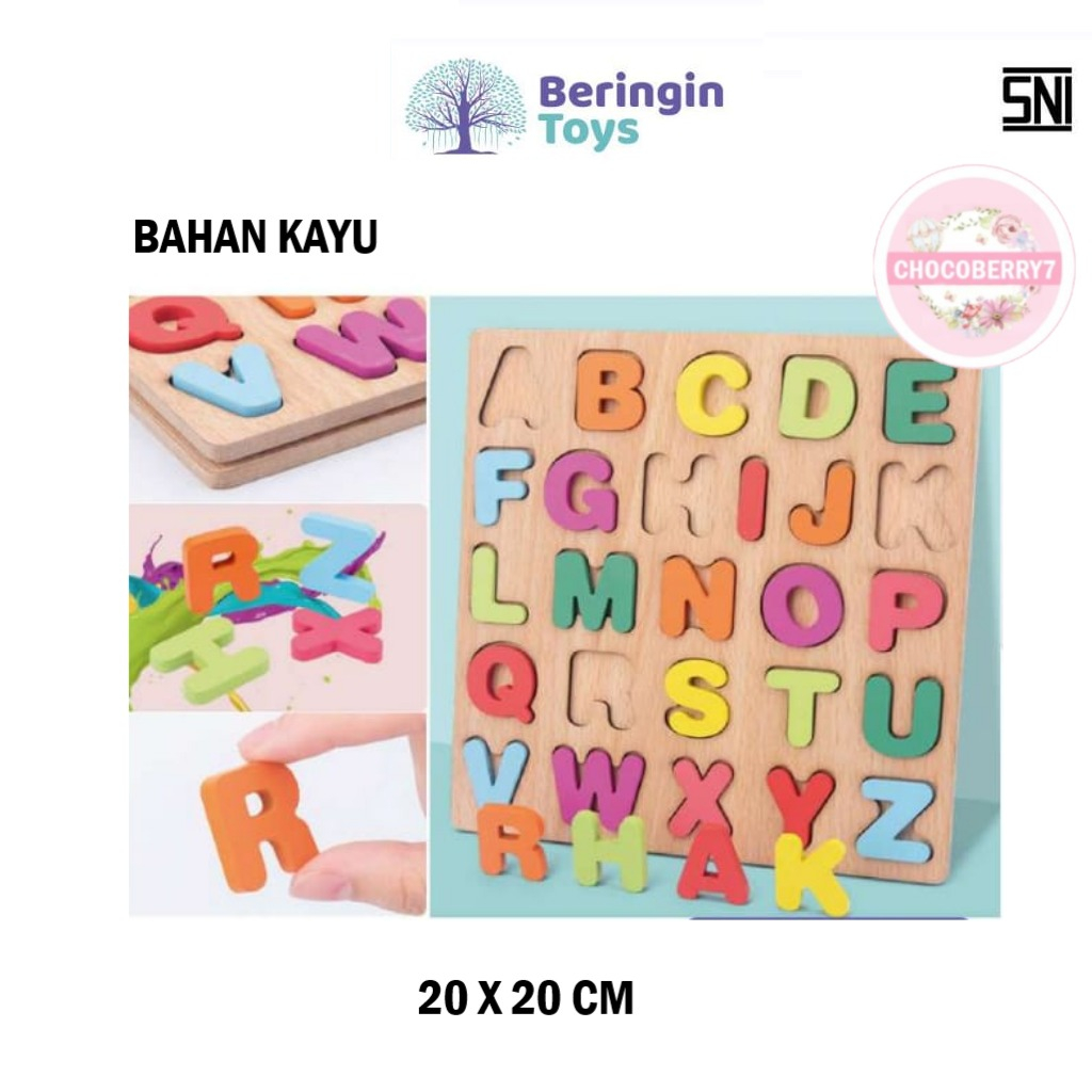 Hobi & Koleksi > Mainan & Games > Puzzle > Beringin Toys Mainan Edukasi Puzzle Kayu Huruf Besar dan Angka 20x20cm - MKQ Number & Alphabet Wooden Puzzle Anak