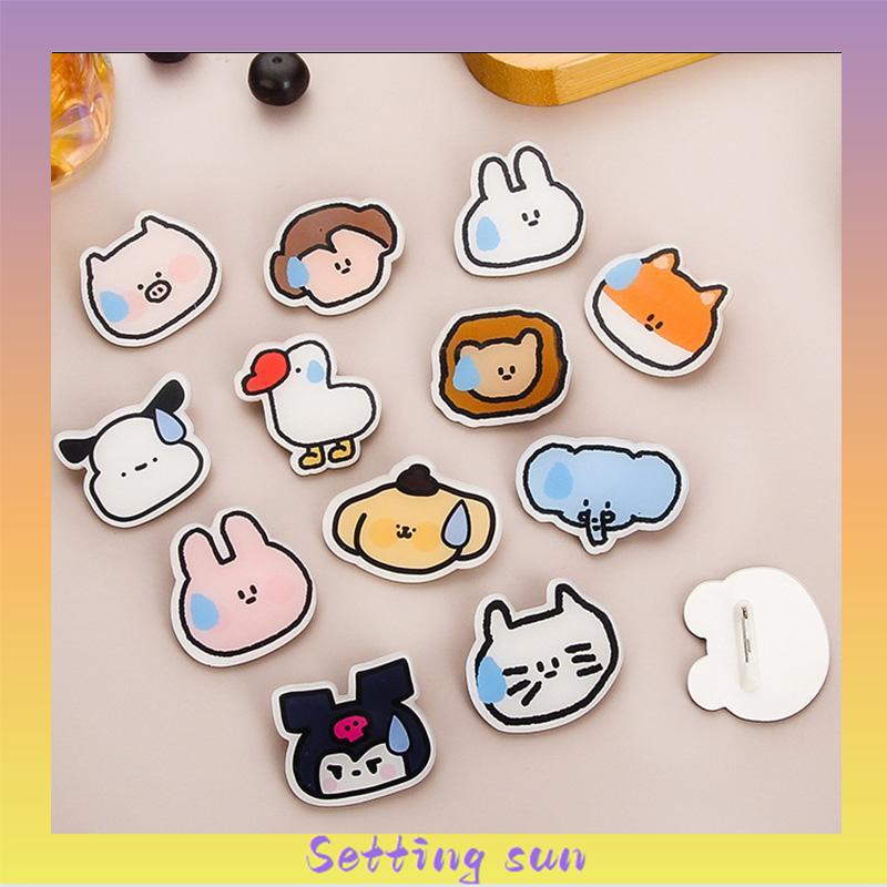 Detail Berkeringat Emoji Bros Akrilik Kartun Lucu Lencana Hewan Kecil Lencana Jepit Rambut DIY TN