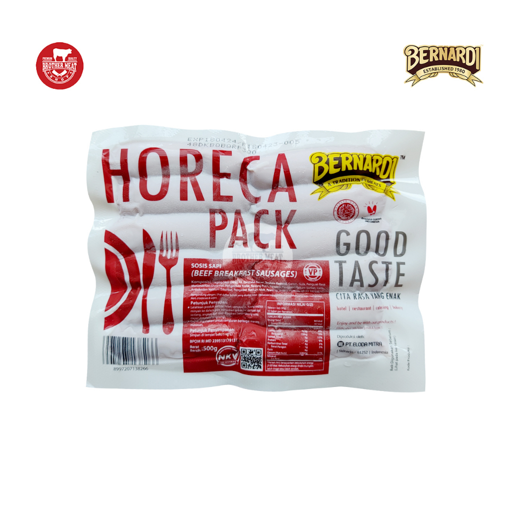 INFORMASI PRODUK: BERNARDI Sosis Sapi 500gr. Sosis dengan kategori CL harus dikupas dulu lapisan luar kulit sosisnya berbeda kategori VP yang tidak perlu dikupas. - Produk: Sosis Sapi [500gr] - Merek: Bernardi - Berat/Kemasan: 500gr - Halal 100% MUI