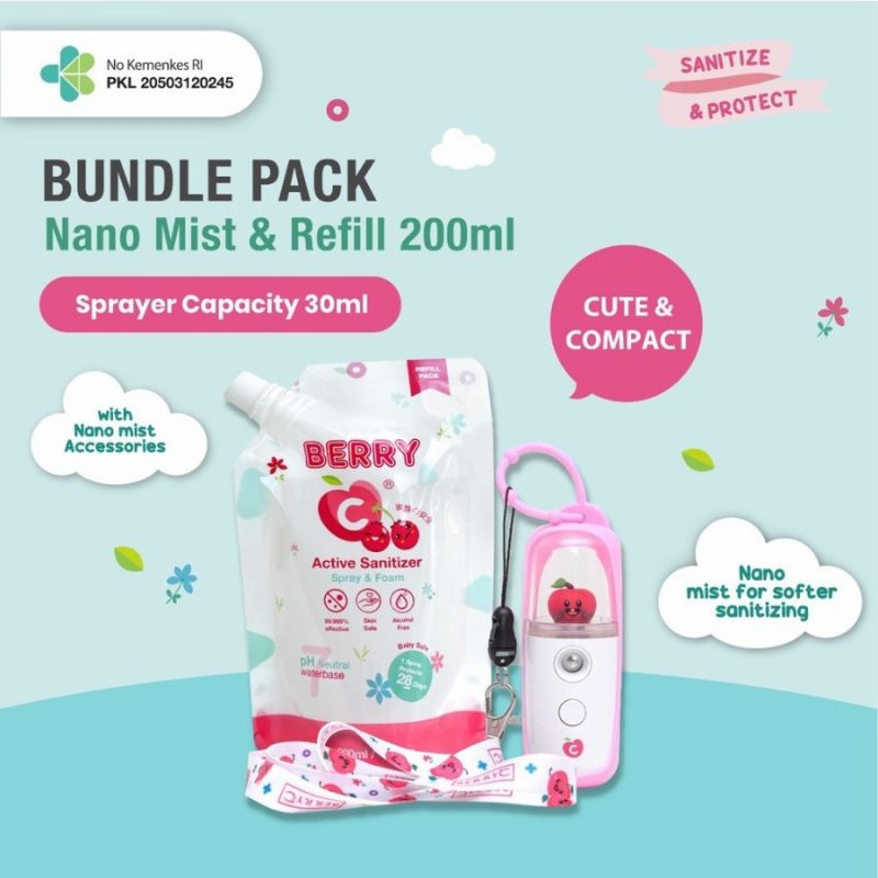 BerryC Nano Mist Spray - BerryC Nano Mist Sprayer mengubah cairan BerryC Sanitizer menjadi partikel antiseptik berukuran nano. - Menghasilkan embun yang tipis, lembut & halus (tidak menimbulkan kesan basah) - 10x menghasilkan lebih kecil dari sprayer lain - Cocok untuk anak-anak - Pocket size protection & mudah dibawa di dalam tas & sangat portable - Fast absorbing on skin & surface - Efektif & efisien untuk CLEAN & PROTECT permukaan benda/kulit manusia dari virus, bakteri & jamur.