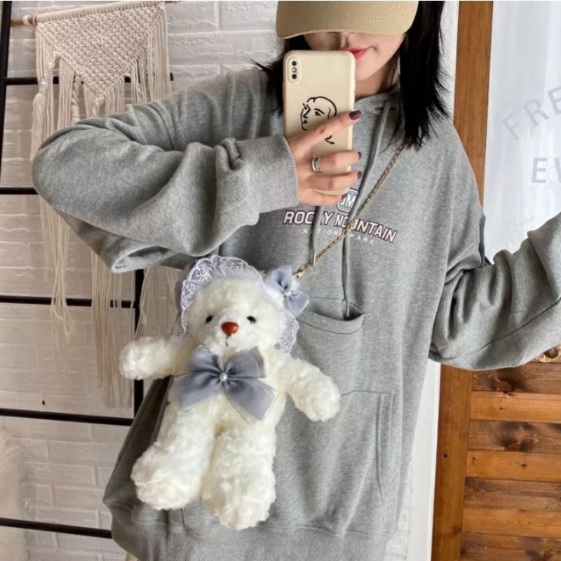 Detail Beruang Cimory Tas Selempang Boneka Lucu Tas bulu selempang bahu Selempang Tali Rantai Wanita Fashion