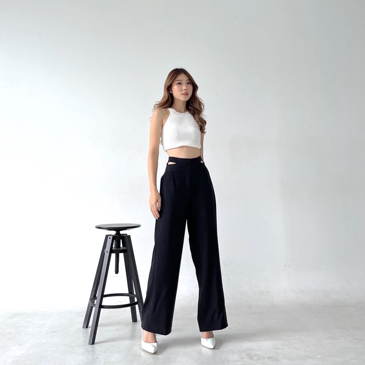 Detail Beryl Cut Out Pants / Celana Cut Out Wanita / Hight Waist Korean Pants