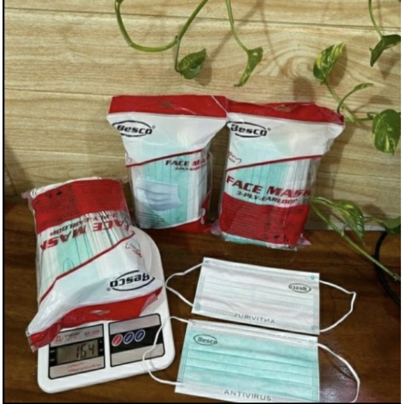BESCO earloop 3ply 50pc NOBOX/SACHET termurah