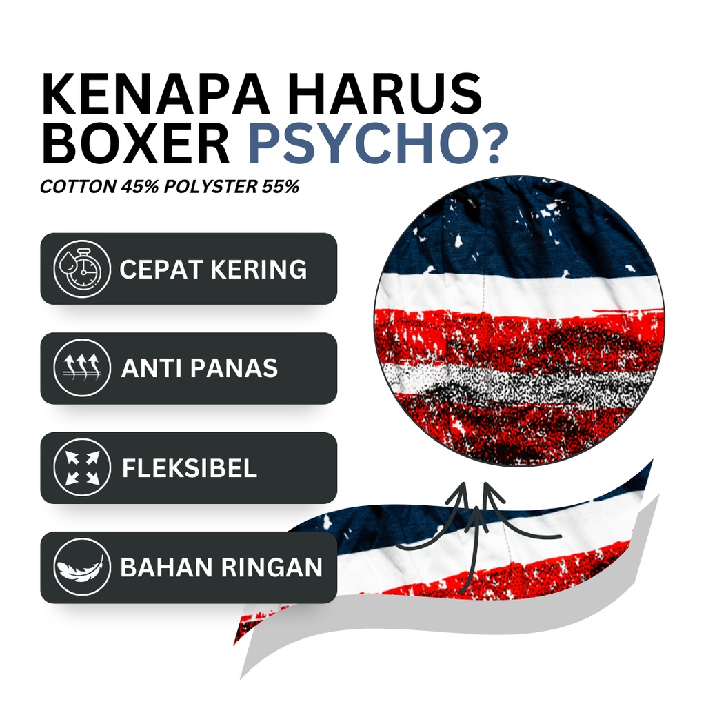CELANA BOXER premium berbahan dasar cotton. Terbuat dari bahan Teteron Cotton premium dan telah melalui proses double softing, memberikan sensasi lembut dan sejuk saat digunakan. Kain katun memiliki elastisitas dan daya serap keringat yang sangat baik, sehingga nyaman digunakan sehari-hari. Boxer Short kami tersedia dalam banyak pilihan motif menarik.