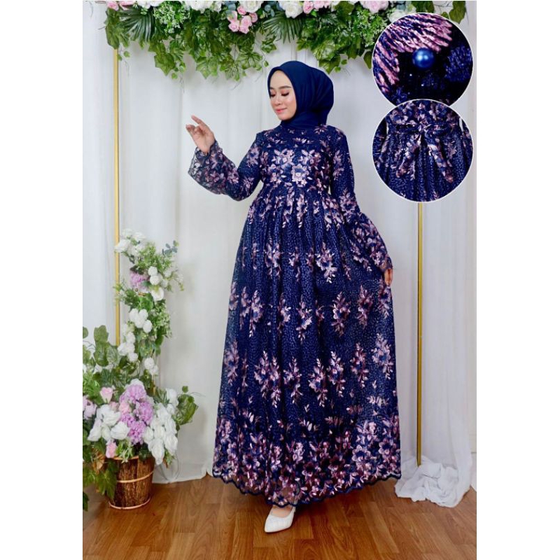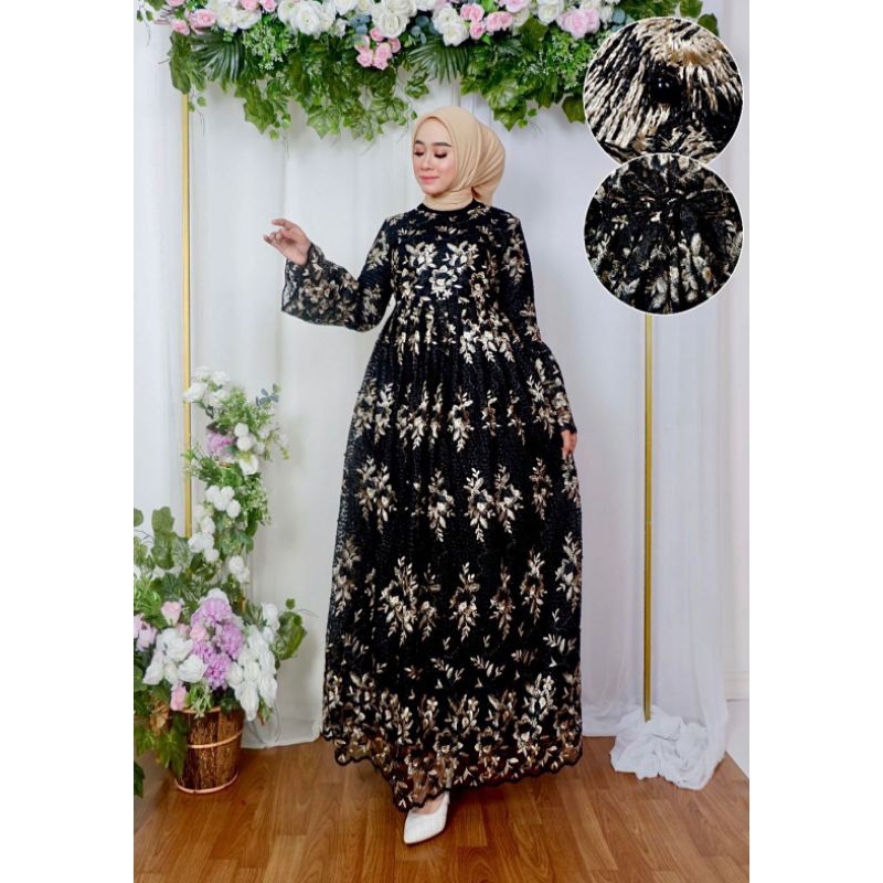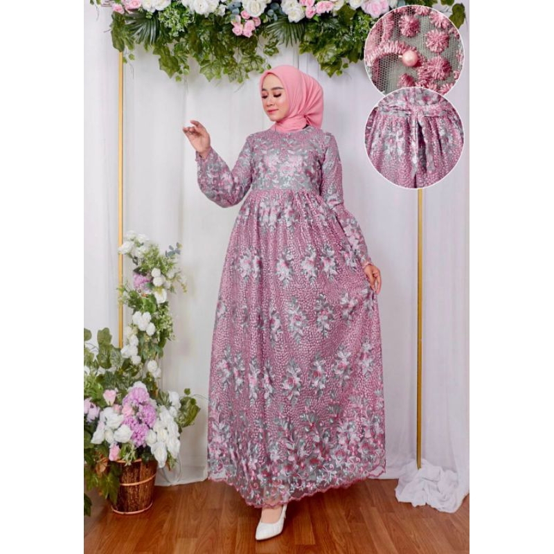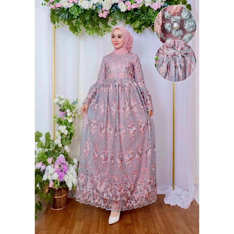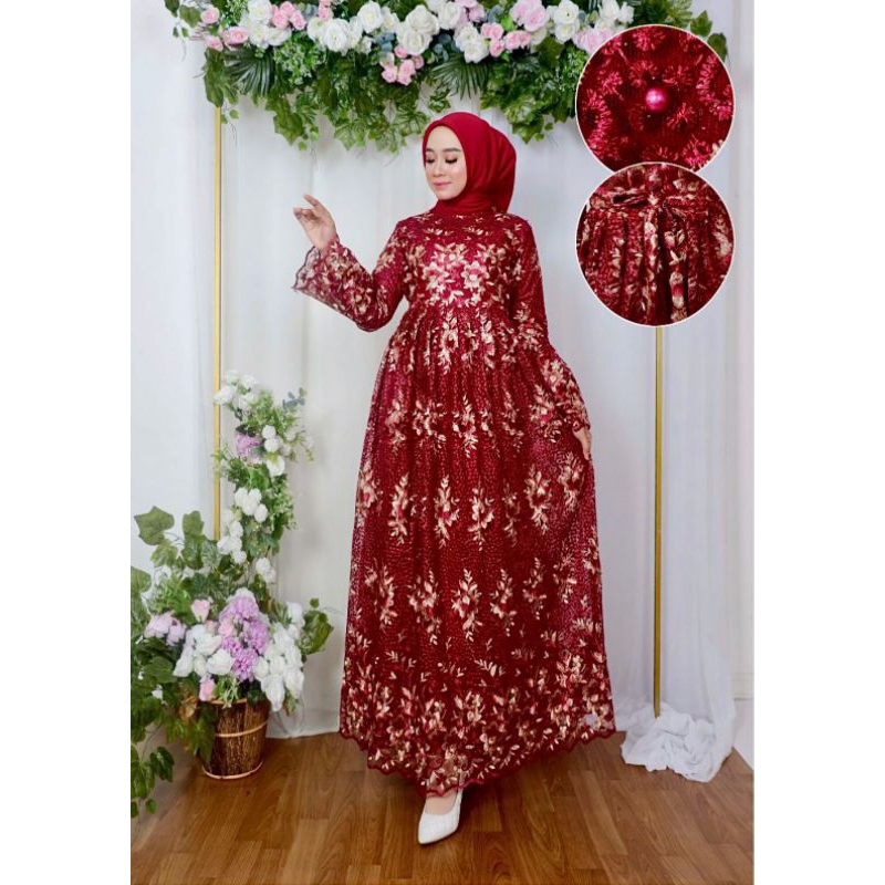 Bahan Tulle Bordir Super Premium Dalaman Satin Velvet Sleting Belakang Panjang Baju 140 cm Ukuran : M , L , XL , XXL M = Ld 100 L = Ld 105 Xl = Ld 110 XXL = Ld 116
