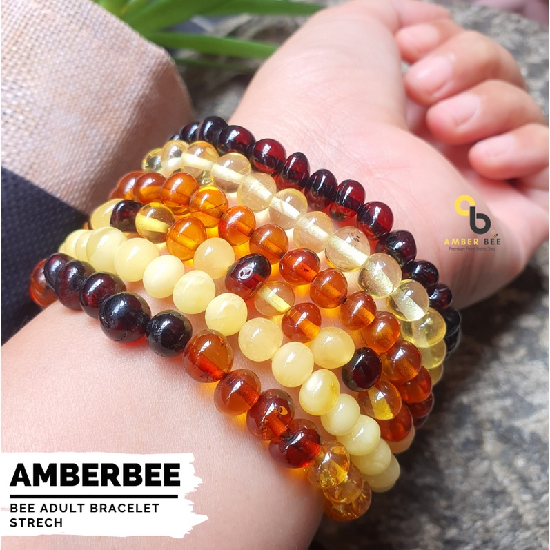Detail [BEST SELLER] Gelang Amber Baltic Lithuania Dewasa Premium Glossy Multicolors Stretchy By Amber Bee