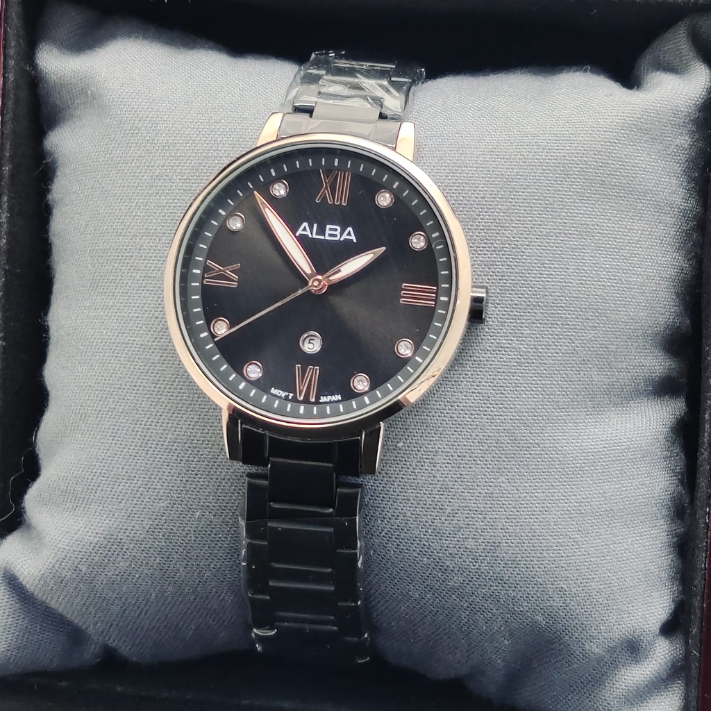 BEST SELLER JAM TANGAN WANITA ALBA ANALOG P75 TALI RANTAI BODY BULAT DM 3.5CM FREE BOX & BATERAI || JAM TANGAN FASHION WANITA JAM TANGAN CEWEK MURAH