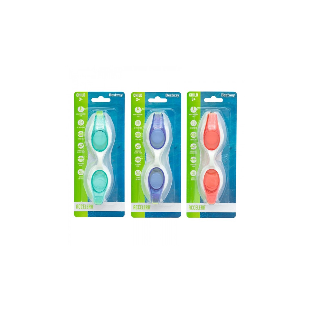 Bestway Accelera Goggles 21062 ( Kaca Mata Renang Anak ) Mempunyai 3 variant warna yaitu : - Merah - Biru - Hijau