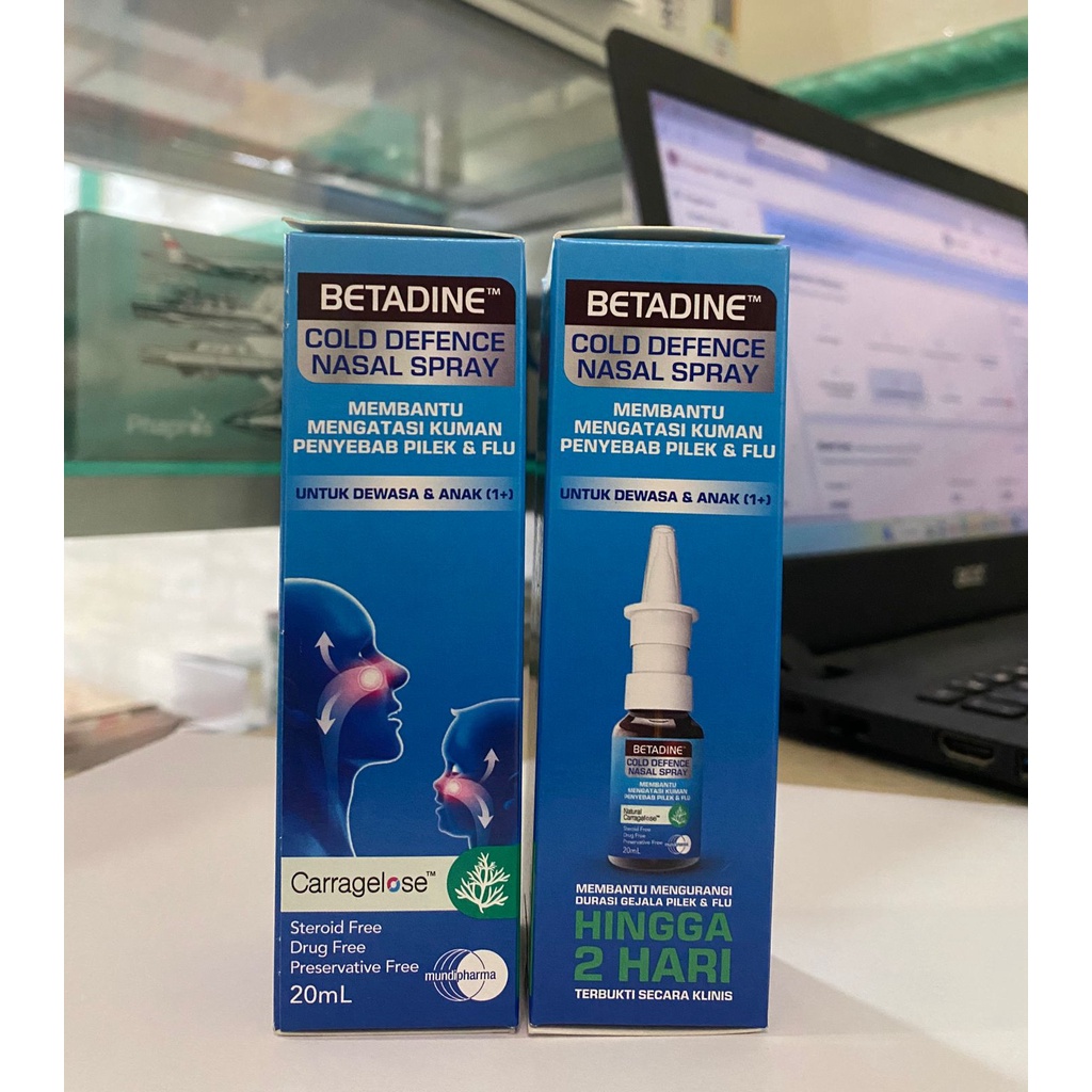 Terbukti secara klinis mampu membantu mengurangi gejala pilek dan flu hingga 2 hari BETADINE" Cold Defence Nasal Spray adalah semprotan untuk rongga hidung dengan kandungan Carragelose" yang digunakan untuk membantu mengurangi durasi dan keparahan gejala pilek dan flu, melembabkan lapisan rongga hidung untuk melindunginya dari kekeringan dan luka