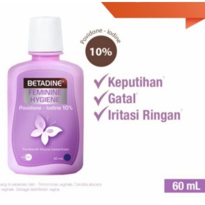BETADINE® Feminine Hygiene merupakan antiseptik kewanitaan untuk mengatasi gejala iritasi ringan, gatal-gatal dan keputihan yang disebabkan oleh Trichomonas vaginalis, Candida albicans, dan Gardnerella vaginalis. Sebagai desinfektan vagina.