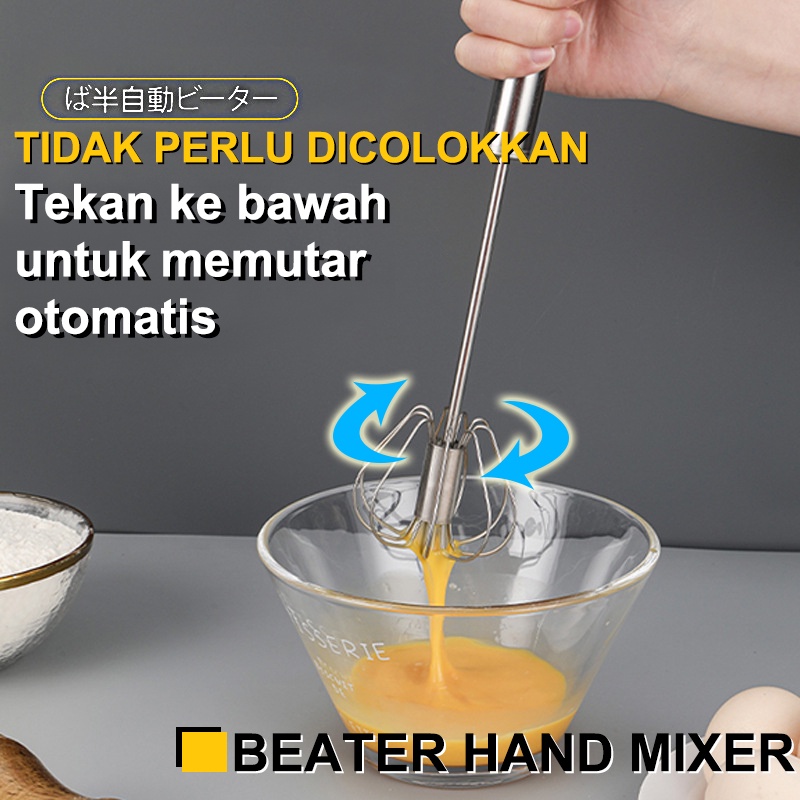 Alat pengocok revolusioner bahan stainless steel dapat berputar Alat masak modern Produk mixer yang revolusioner ini wajib dimiliki bagi Ibu-Ibu rumah tangga yang hobi memasak dan membuat kue. Home Better Beater produk terbaru ini tidak memerlukan tenaga listrik, pemakaiannya sangat gampang, hanya perlu di tekan kebawah, mixer akan otomatis berputar, tenaga yang diperlukan untuk memutar juga sangat minimal karena dengan teknologi per / pegas khusus di dalam Alat ini, meski dengan tenaga minimal, putaran tetap kencang, sehingga bisa digunakan untuk mengocok berbagai macam bahan masakan / membuat kue seperti : Dressings, Sauces, Whipped Cream, bahkan bisa juga untuk membuat Smoothies, Mengocok telur dan bahan-bahan lainnya