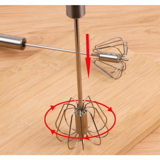 Cara kerja : cukup ditekan kebawah,maka mixer ini akan bekerja secepat mixer listrik.. Wooowww kannsis,, Kini memasak omlet, spagetty, kue, milk shake, dll makin mudah.. Gak pakek baterai atau listrik ? Kok bisaa?? itu karena ditekan, jd gaya dorong dr atas dan bawah, memutar 360 derajat