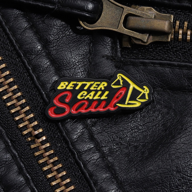 Detail Better Call Saul Enamel Pin Bros Seri TV Timbangan Miring Bros Kerah Lencana Lucu Perhiasan Hadiah Untuk Teman