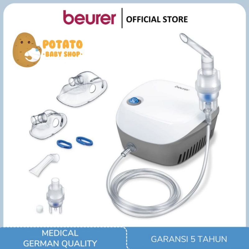 Kelengkapan dalam paket : 1. Alat Nebuliser beurer IH18 2. Aksesoris : masker dewasa, masker anak, pipa pengisap, selang, atomiser, filter pengganti 3. Tas penyimpanan 4. Buku panduan (ada juga dalam bahasa Indonesia) 5. Kartu garansi