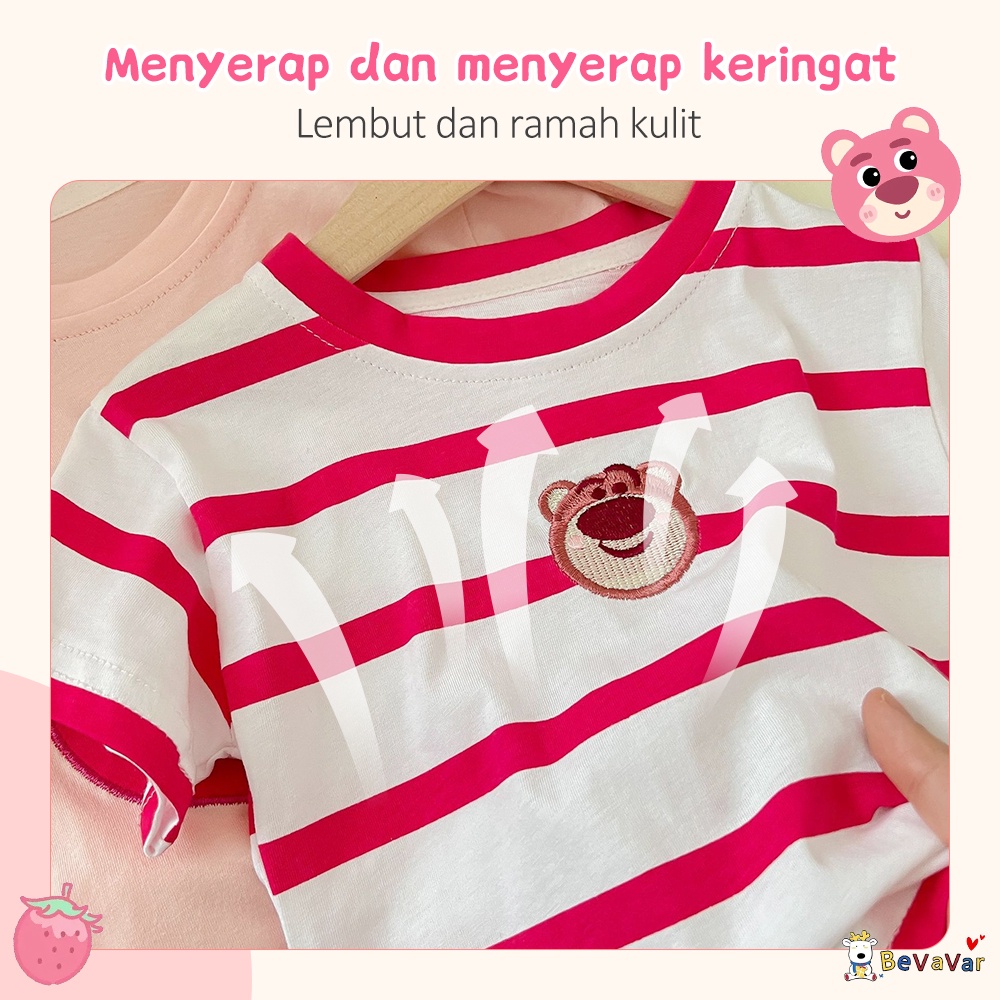 Detail BEVAVAR 1-7 thn baju anak perempuan import /Atasan pendek anak perempuan/ Kaos Beruang Stroberi