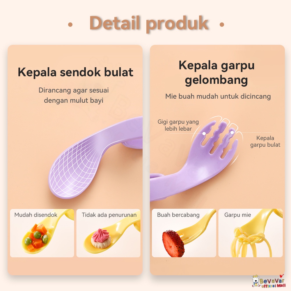 Detail BEVAVAR 2Pcs/Set Training Spoon And Fork Sendok Garpu Makan Anak Bayi Alat Makan Anak