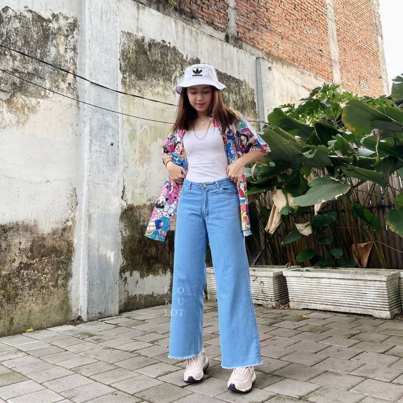 Detail BF CELANA KULOT JEANS PANJANG HAIGWAIST WARNA//MOZZA KULOT JEANS WARNA