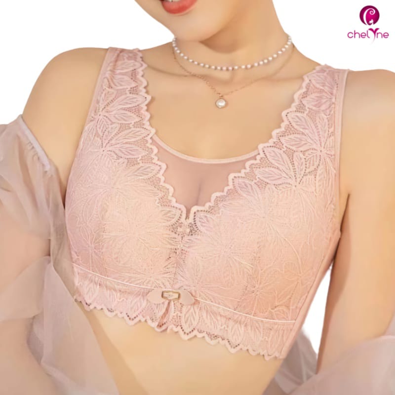 Detail BH Chelyne Premium Big Size Busa L3902 Tanpa Kawat - Jumbo Full Cup Bra - Brukat Lace Mix Seamless 40/44