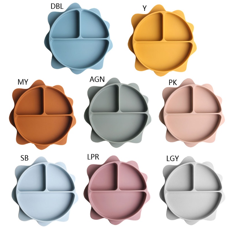 Piring Silikon Anak Motif Matahari ANTI SLIP, TANPA SUCTION Bahan premium ya moms Dijamin bagus banget Cocok untuk si kecil yang belajar makan sendiri BPA FREE, FOOD GRADE SILICONE