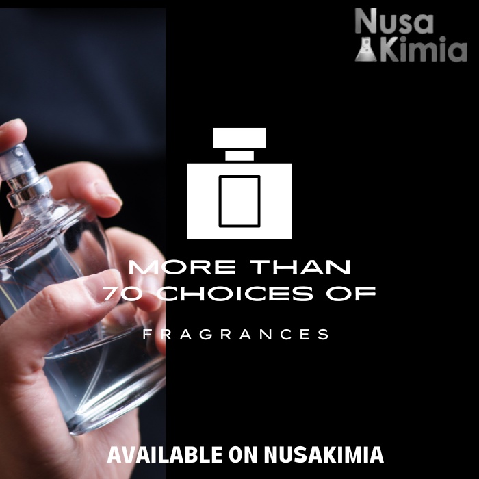 Tersedia puluhan varian wangi bibit parfum di toko Nusakimia, kelebihan yang akan didapat : 1. Bibit parfum kental, masih murni tidak dicampur oleh bahan apapun. 2. Kualitas produk dari parfum house ternama di Indonesia, mempunyai sertifikasi dan dokumen yang sesuai standard. 3. Bibit parfum aman digunakan, awet tahan lama, dan dapat dikreasikan dengan varian lainnya. 4. Pembuatan racikan sangat mudah, mau digunakan sebagai parfum spray atau oles bisa