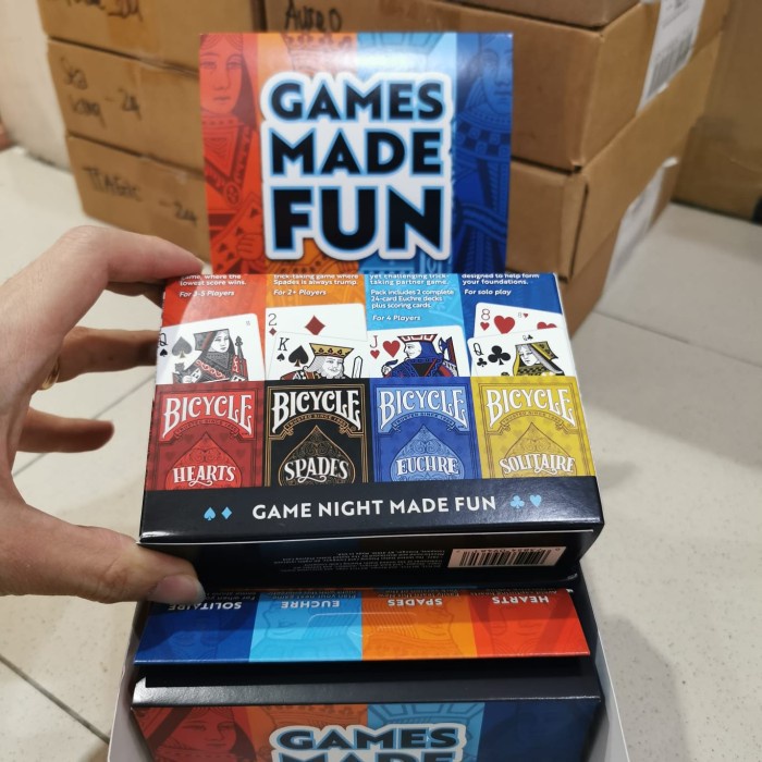 BICYCLE GAMES 4PACK PLAYING CARD KARTU REMI SULAP POKER only authentic *kartu standart untuk sulap profesional *kartu standart poker international *limited series (delisting product) *cocok untuk collector dan investasi hobby *premium item (not for minor) *Made in USA
