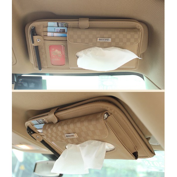 Bahan kulit sintetik berkualitas terbaik dan finishing yang sangat rapi. pemasangan mudah kapasitas 16 keping CD, 4 kartu, 1 slot holder pena atau kaca mata dan isi tissue max 200lembar Ukuran : 33cm x 16cm Warna : Light Brown, Cream, Abu, Hitam