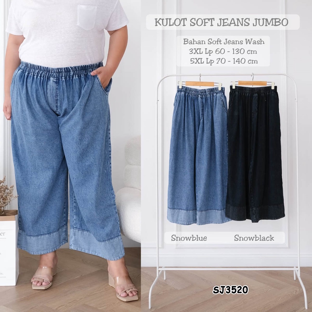 KETERANGAN SOFTJEANS SJ3520 === 3XL: Allsize Jumbo fit to XXXL (3XL), Jumbo, tidak melar, pinggang full karet, 2 saku samping kanan kiri Lingkar Perut/Pinggang : 60-130cm Lingkar Pinggul : 140cm Lingkar Paha : 80cm Panjang : 90cm Bahan : Soft Jeans Wash