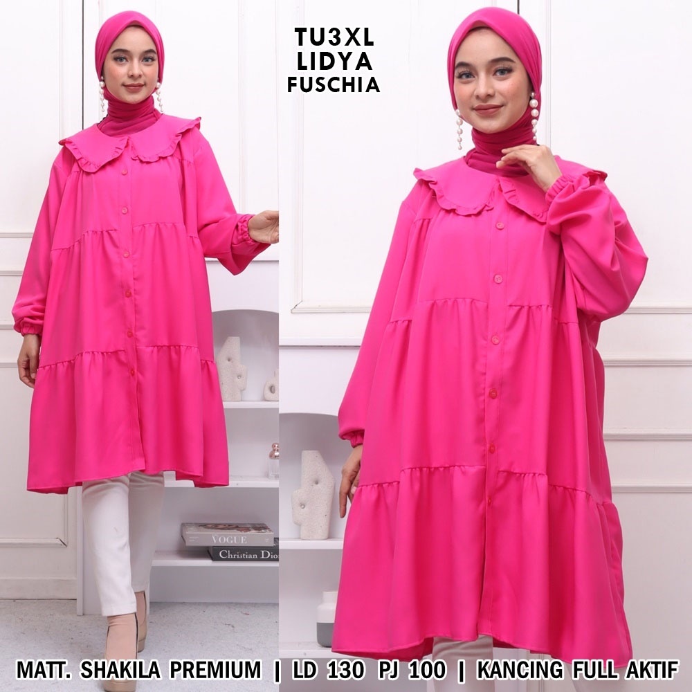 Keterangan Lidya: Allsize fit to XXXL (3XL), tidak melar, 7 kancing hidup bagian depan, ujung lengan karet, rempel bagian kerah Lingkar Dada : 130cm Lingkar Pinggang : 160cm Lingkar Ketiak : 60cm Panjang Lengan : 58cm Panjang : 100cm Bahan : Shakila Premium