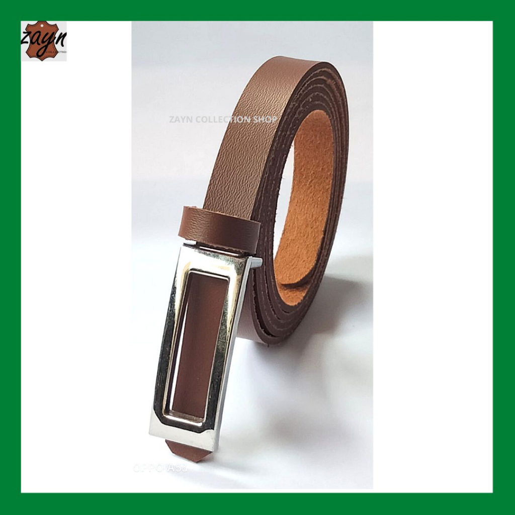 Ikat Pinggang Wanita Bahan Kulit Gesper mewah dan elegan datang lagi ya kak.. model buckle anti karat dengan warna gold membuat gesper terlihat mewah, bahan tali juga dari bahan kulit swede yang lembut, pokoknya bahannya rebutan para pengrajin gesper ini kak, karena sangat bagus dan tidak kaku