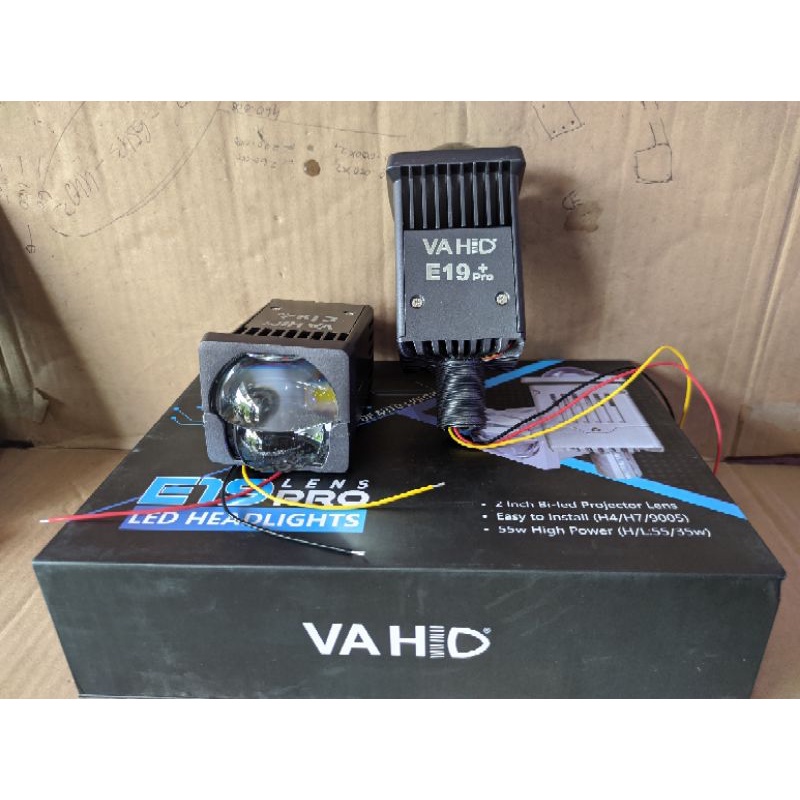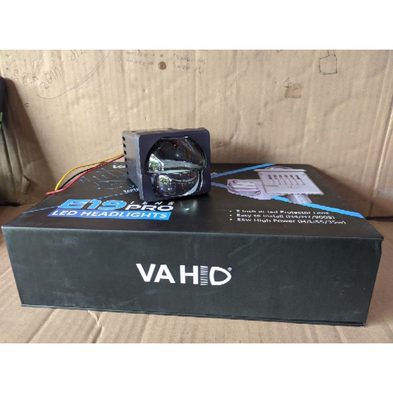 produk baru original vahid e19 projector lend 2inc lensa :2inc panjang: 2 cm tinggi: 5,5 cm Hi beam :55what semi laser kotak low beam :35 what harga untuk 1pasang input 24 volt