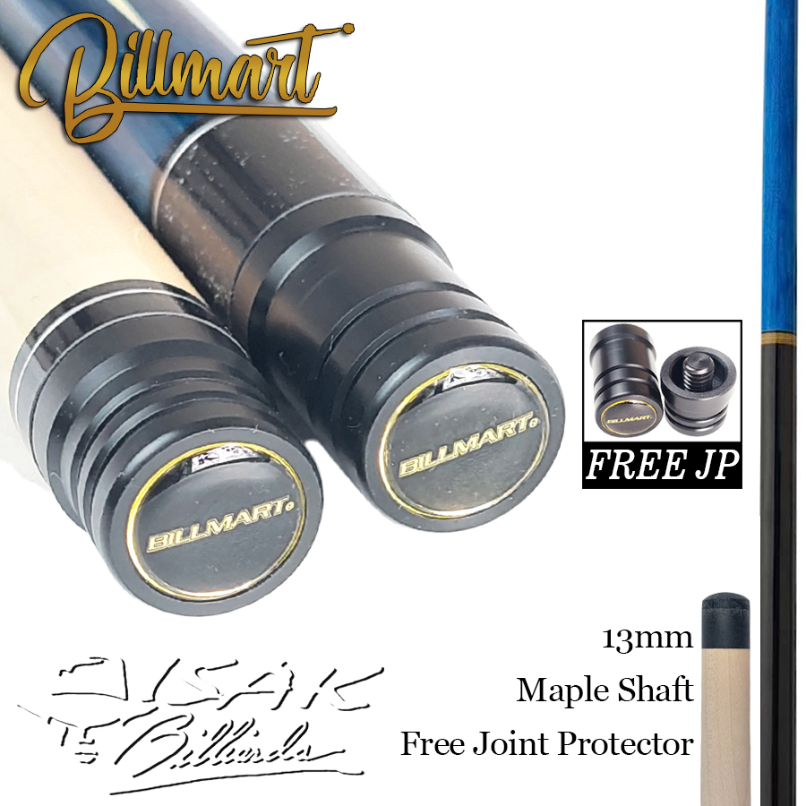 Spesifikasi: - Model: Billmart 01 - Color: Blue - Tip: Ivory Phenolic - Tip Size: 13 mm - Grip: No Wrap - Material: Maple Wood - Joint: 5/16x18 - Weight: 19-21 oz (di kirim random)