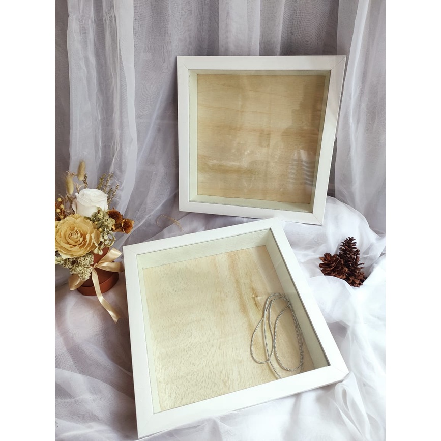 Detail Bingkai 3D 30x30x5cm frame pigura (depan pakai akrilik) / pop up / scrapbook / mahar
