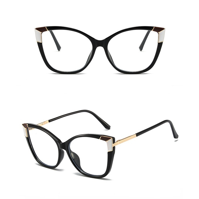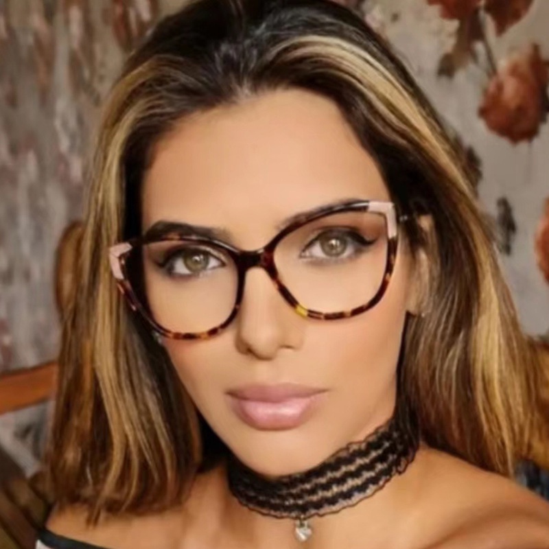 Detail Bingkai Besar Bingkai Mata Kucing Retro Anti-Cahaya Biru Kacamata Tren Pola Kepribadian Lampu Datar Cermin TR Kacamata Bingkai