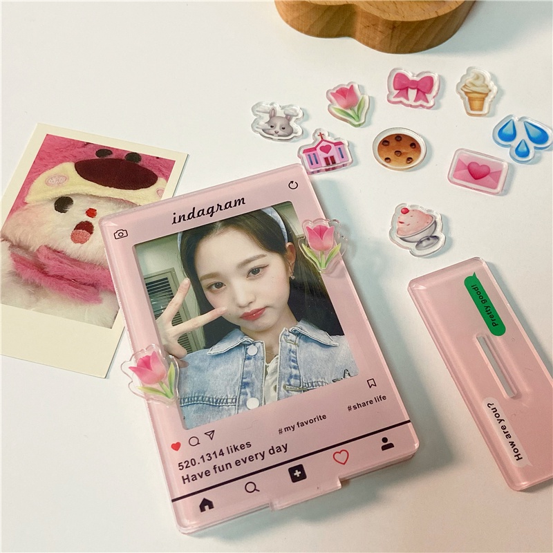 Detail Bingkai Foto Akrilik Dengan 10pcs Dekorasi INS Idol Photocard Emoji Display Holder 3inch Kreatif Desktop Dekorasi Alat Tulis