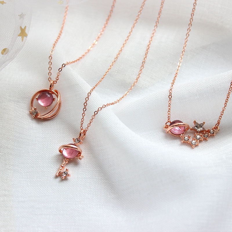 Detail Bintang Kunci Liontin Kalung Untuk Wanita Merah Muda Rantai Kristal Choker Adik Pacar Aksesoris Fashion Perhiasan