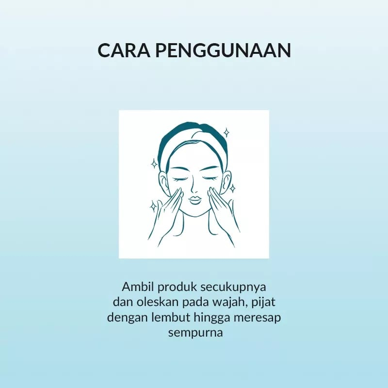 Ambil produk secukupnya dan oleskan pada wajah, pijat dengan lembut hingga meresap sempurna