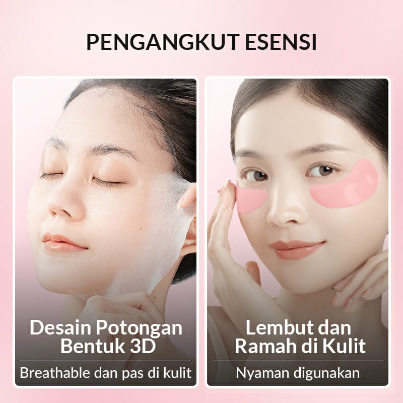 LANGKAH 2: Tempelkan masker mata, tunggu 15-20 menit, lepaskan dan pijat lembut sampai esensinya terserap.
