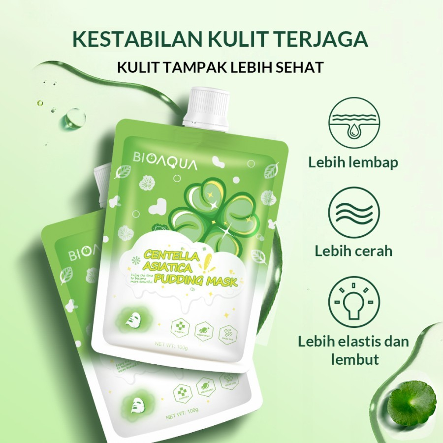 ✅BIOAQUA Centella Asiatica Pudding Mask 100g KULIT BERSIH DANLEMBAP Menenangkan MelembapkanMenghaluskan Mencerahkan BAHAN: Centella Asiatica Menenangkan dan mencerahkan Rosemary Meringankan peradangan Rumputlaut Mengunci kelembapan kulit Kaolin Membersihkan minyak dan kotoran